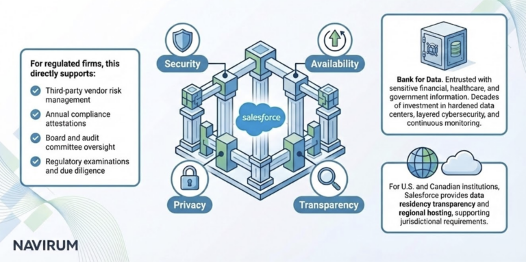 Seamless Implementation: Navirum manages data migration, system configuration, and workflow automation, minimizing disruption and ensuring a smooth transition to Salesforce Financial Services Cloud.